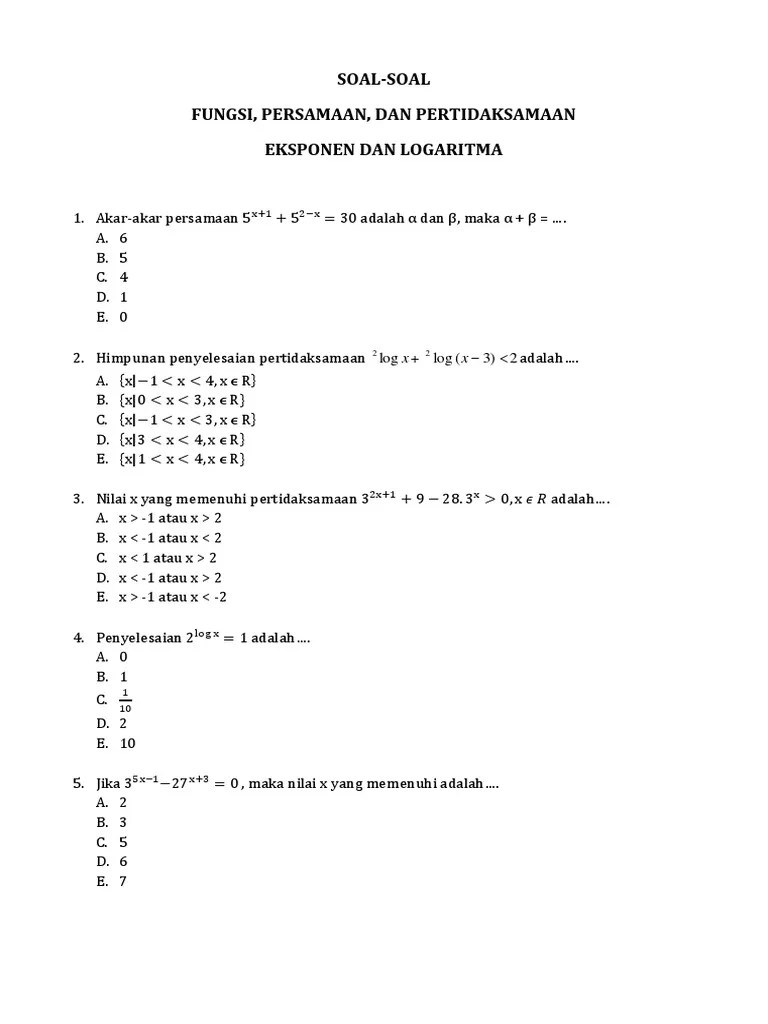 Matematika sma eksponen dan logaritma soal pembahasan matematika sma eksponen contoh . Contoh soal dan jawaban materi eksponen dan logaritma kumpulan contoh. Latihan soal eksponen dan bentuk akar sma. Soal pat matematika ipa kelas 10 sma pdf. Logaritma pengertian rumus sifat dan contoh soal .